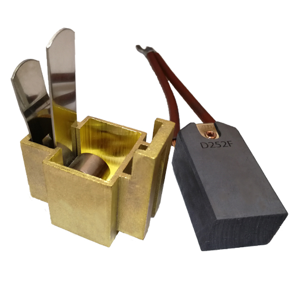 H型恒壓刷握,因使用恒壓簧而得名。恒壓簧具有一個彈力相對恒定的彈力恒定區,從而保證碳刷與集電環的環面接觸壓力在一定行程內相對穩定,保證的碳刷運行電流等參數的穩定性。